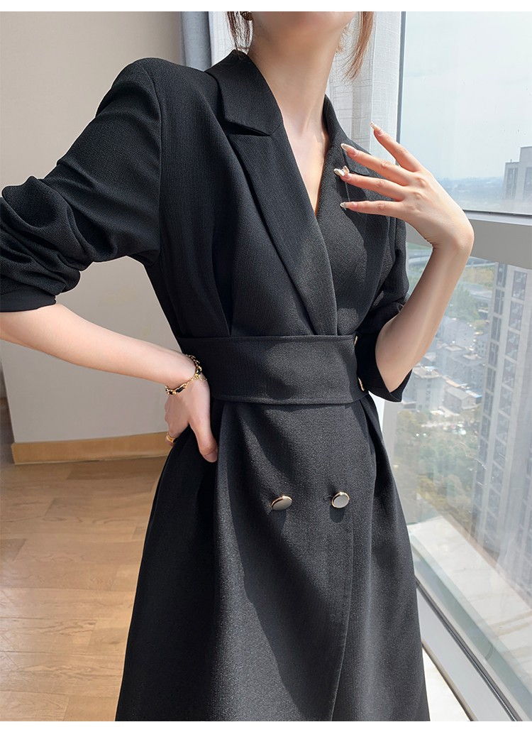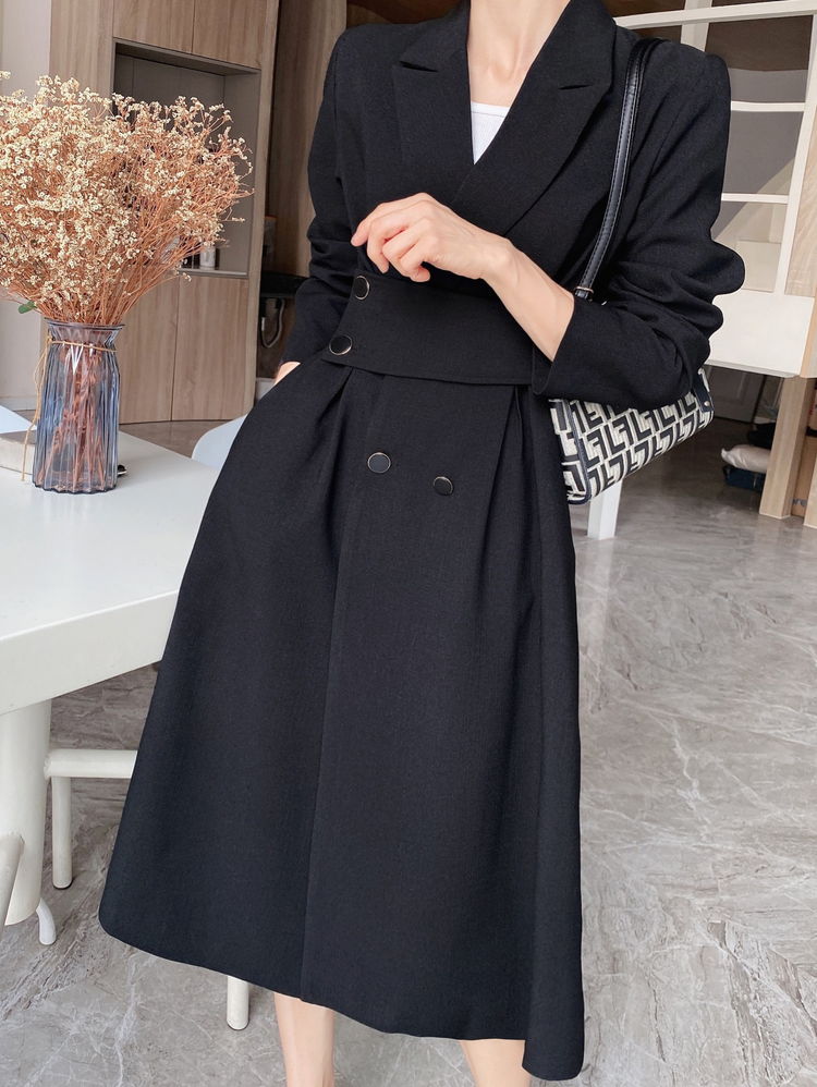 シンプル、上品、エレガント、ミディ丈、モノトーン、襟付き、ウエストベルト