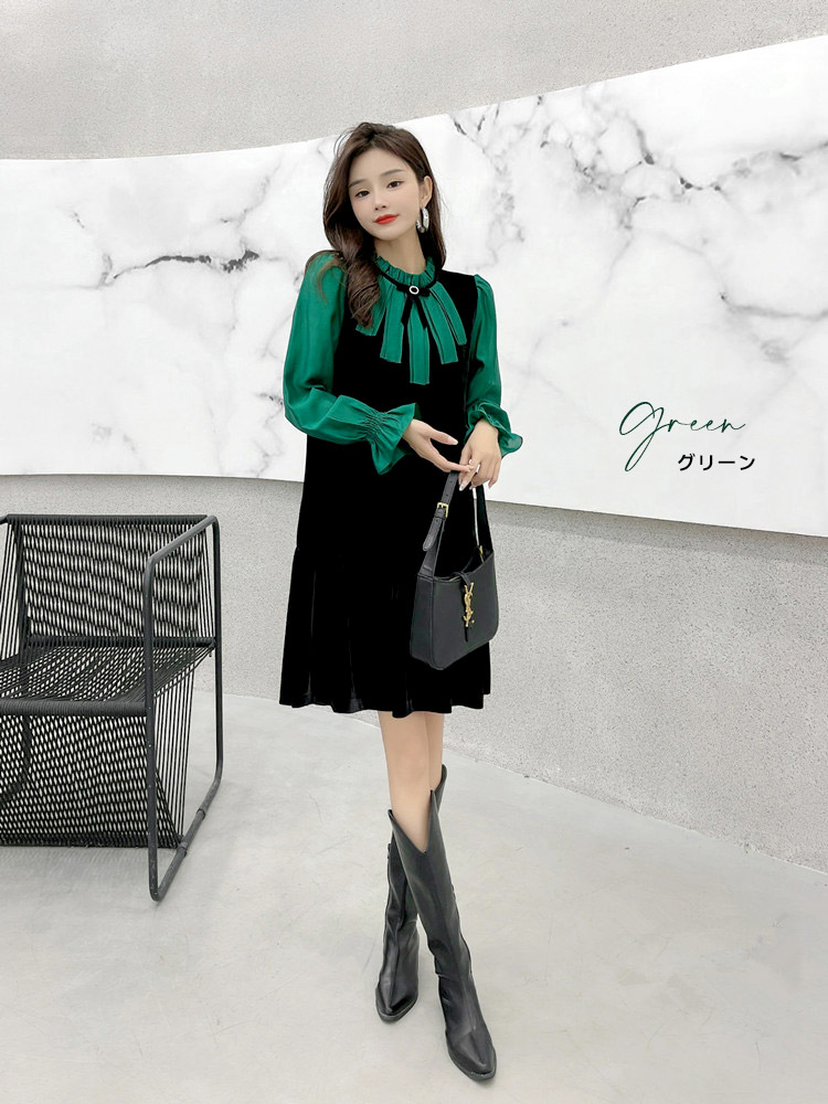 上品、エレガント、クラシカル、ハイネック、ベロア、重ね着風、袖切替