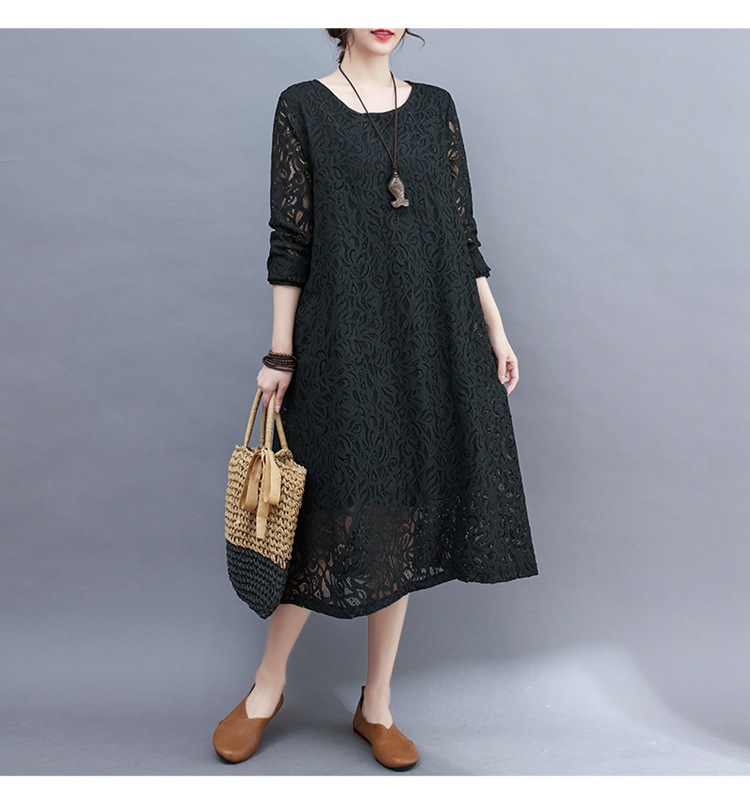 透かし彫り総レースのシンプルミディ丈ワンピース★