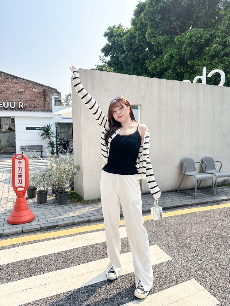 カジュアルボーダーのショート丈ジップアップカーディガン★