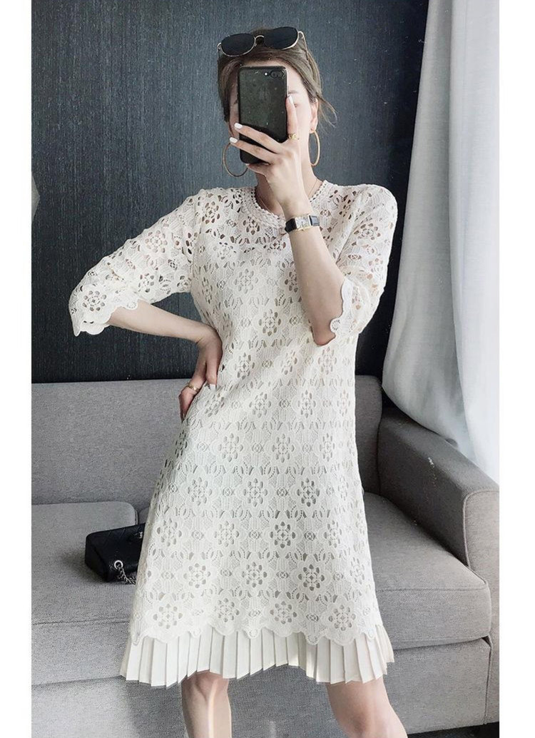 雰囲気のある透かし彫り♪裾プリーツワンピース★