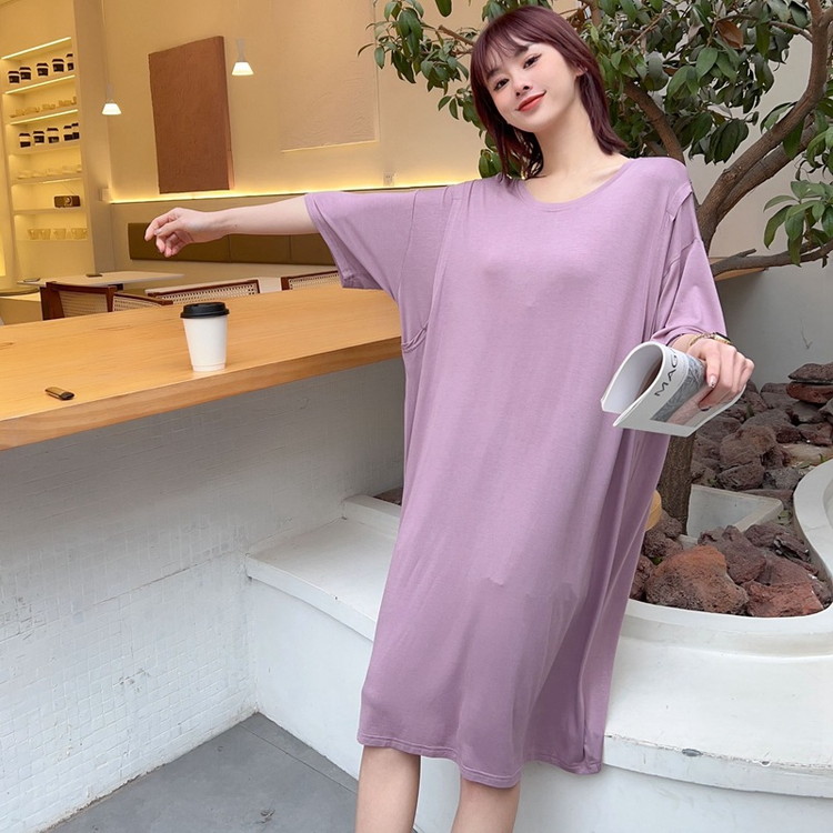 大きいサイズのゆるりと快適な着心地♪シンプルルームウェアワンピース-全身