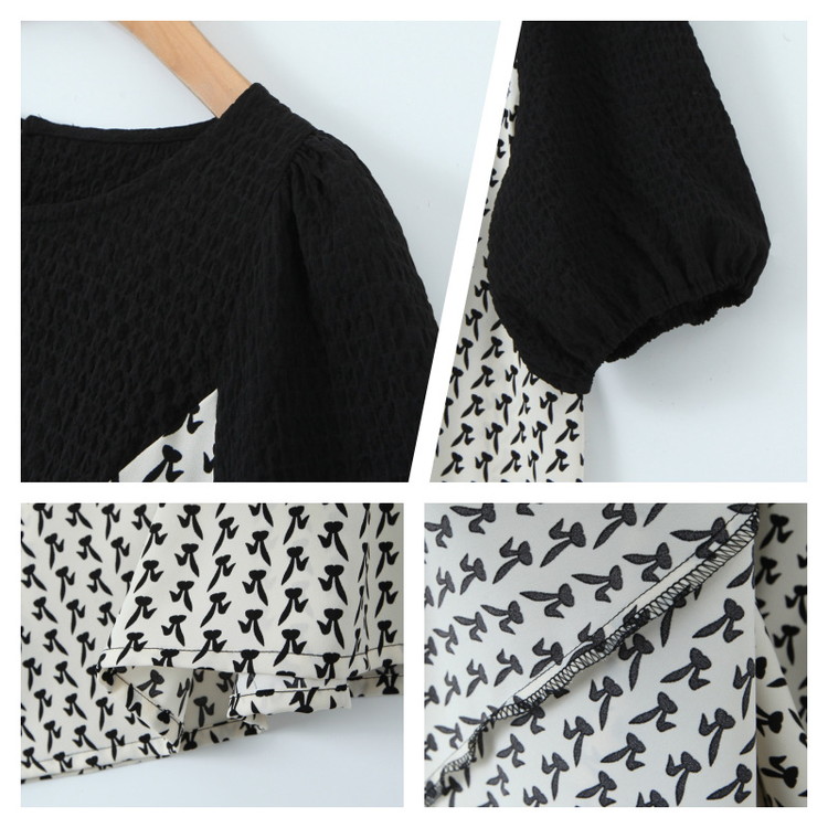 ふんわりパフスリーブの柄切替レイヤードワンピース★