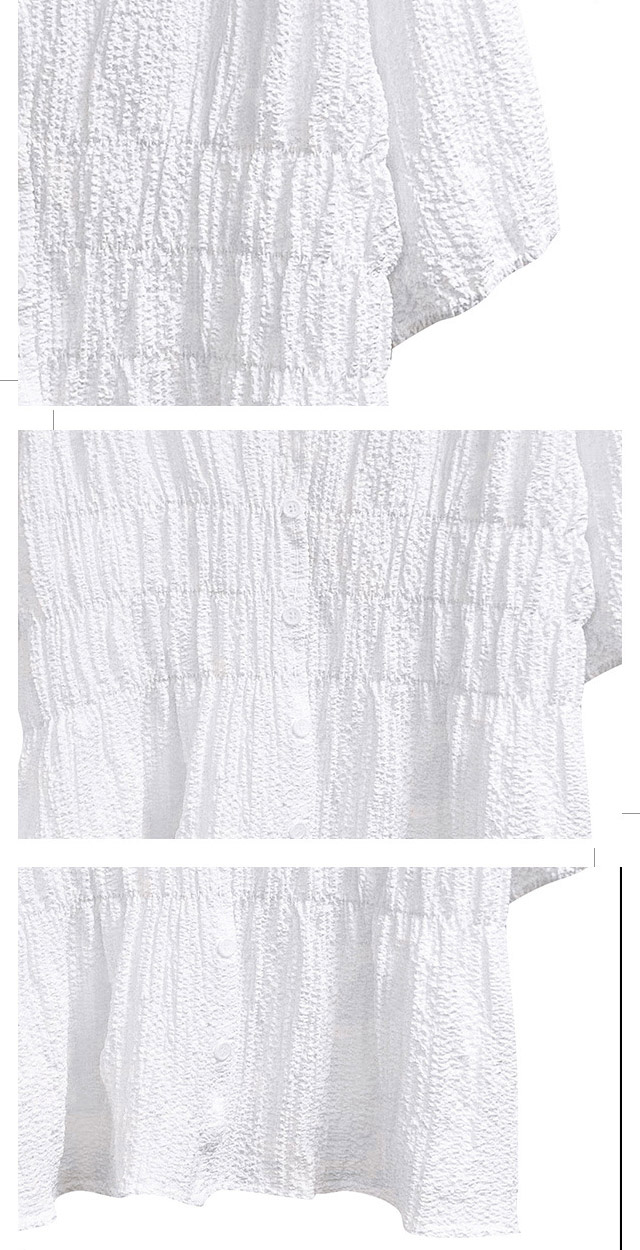 上品、シンプル、Vネック、ペプラム、フレア、五分袖、パフスリーブ