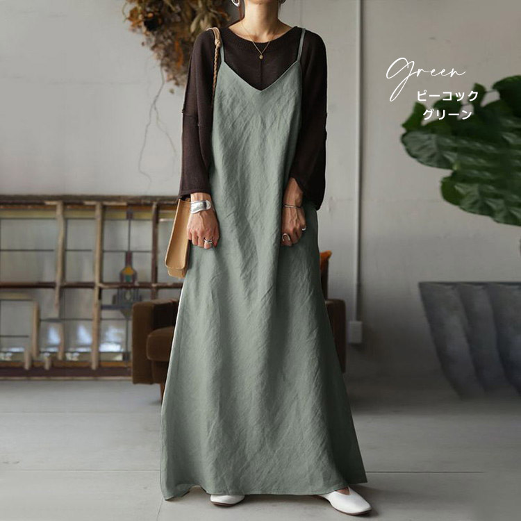 ジャンパースカート、シンプル、マキシ、ロングワンピース、カジュアル、ナチュラル