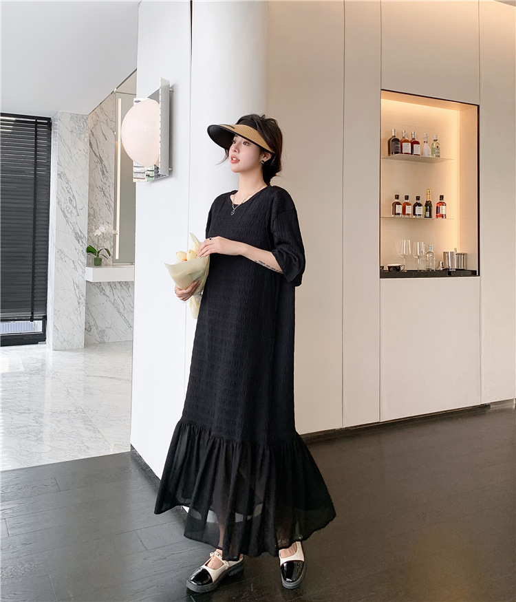 ロング、上品、シンプル、くしゅくしゅ、ロング、マキシ、リゾート、カジュアル