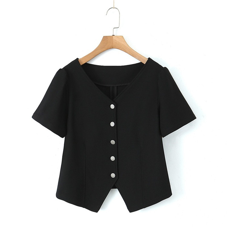ボタンのデザインが目を惹くトップスです。上品かつ個性的なアクセントとなり、周りと差をつけたスタイルを楽しむことができます。