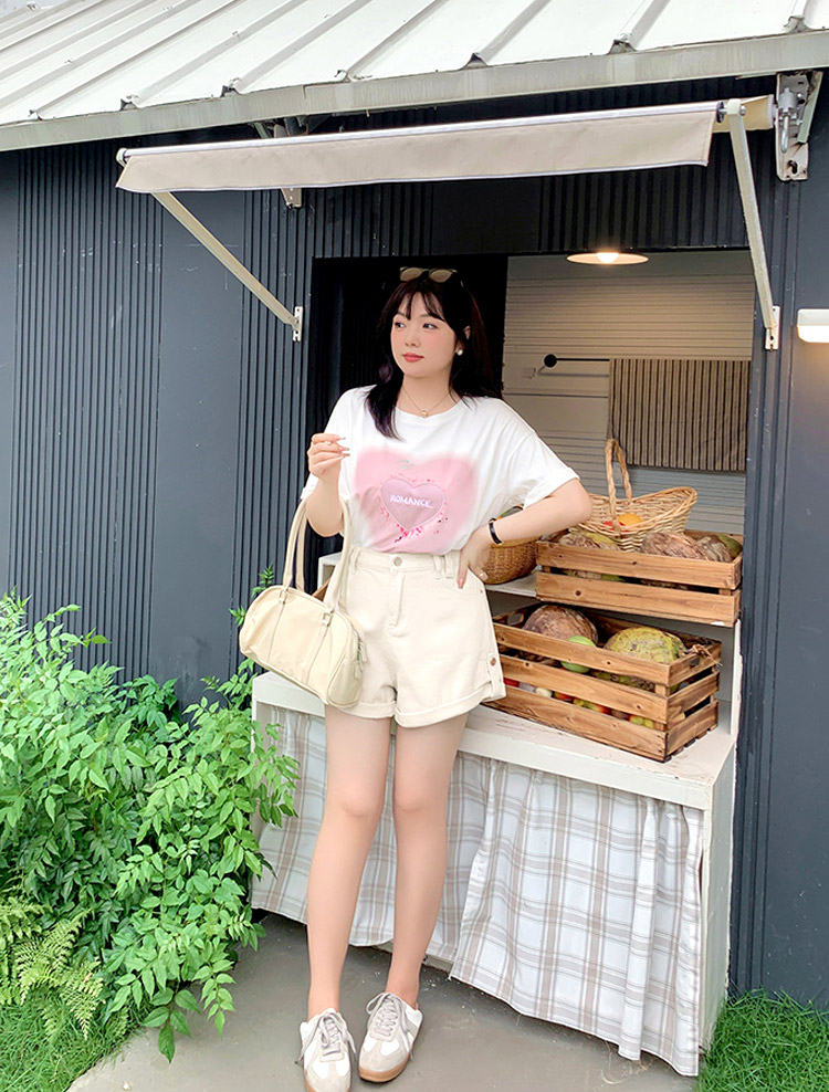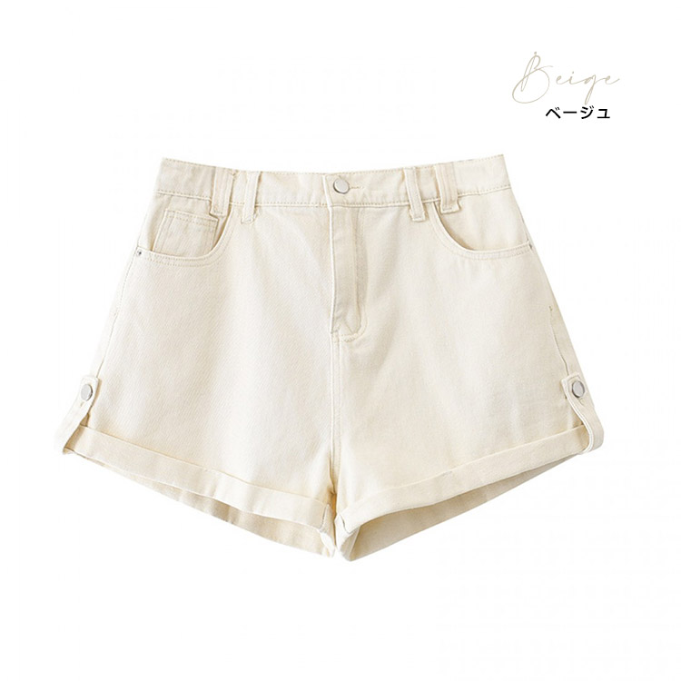 裾はロールアップデザインになっており、脚長効果を演出します。ホットパンツのようなレングスで、夏のコーディネートにぴったりです。