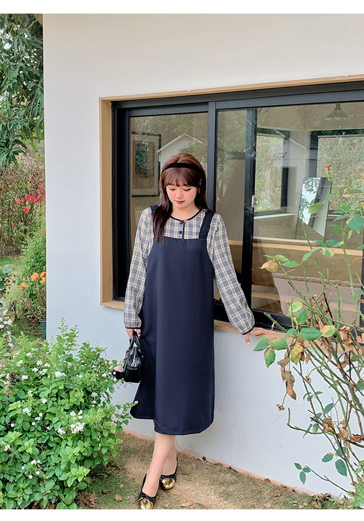 上半身のチェック柄が柔らかい雰囲気を醸し出し、一枚でコーディネートが完成する嬉しいアイテムです。