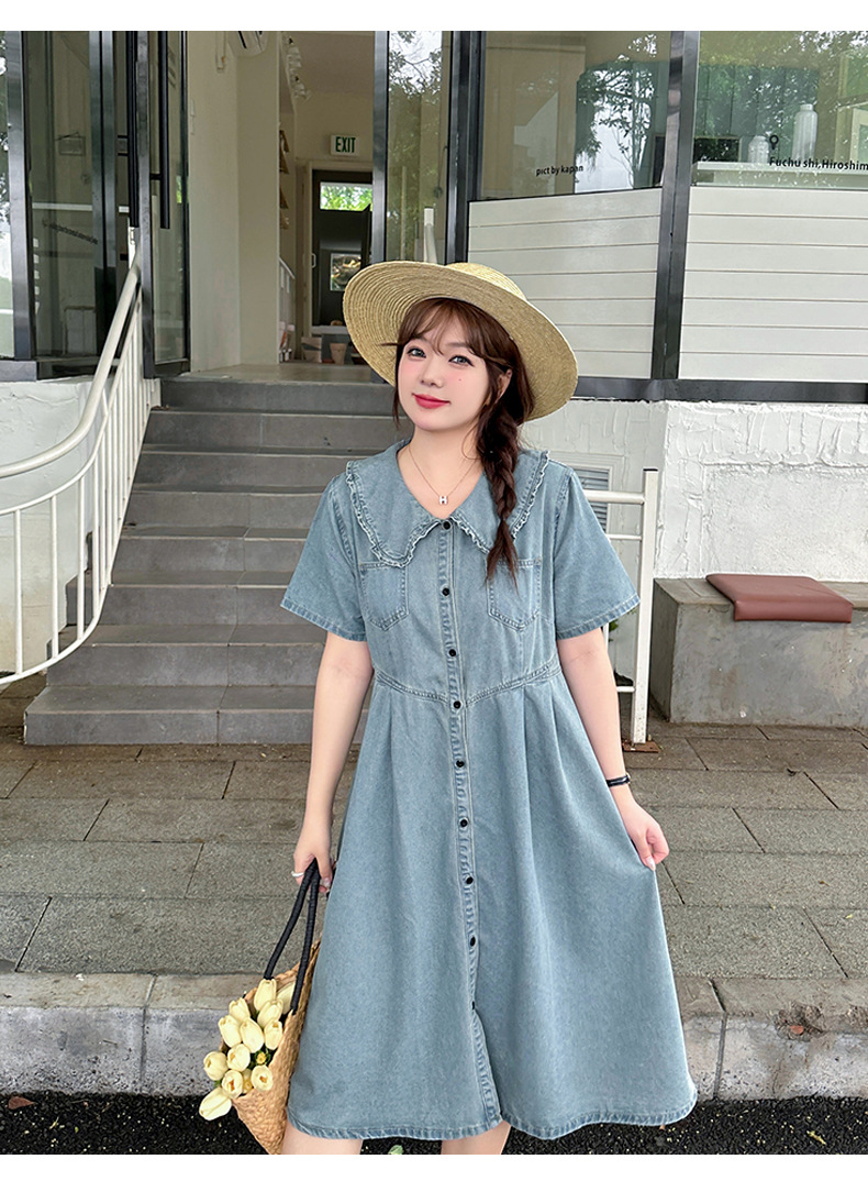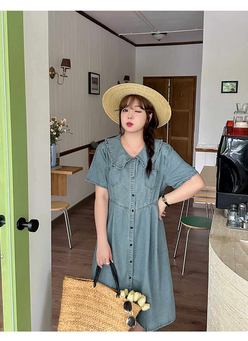 デニムもガーリーに着こなせるフリル衿のワンピース★