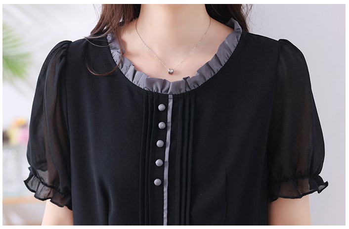 グレーのフリルアクセントがフェイスラインをトーンアップしてくれるチュニック★