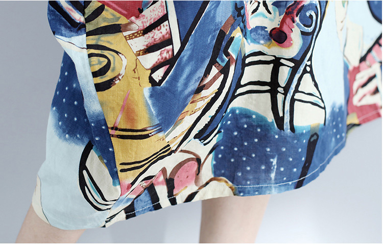 絵画風五分袖ロングワンピース《ゆったり》【春夏】★