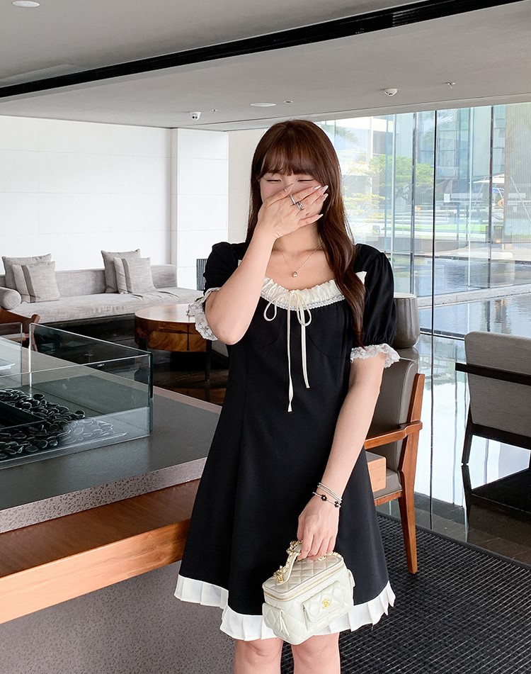 クシュクシュと絞ったデコルテのデザインが可愛いワンピース【春夏】★