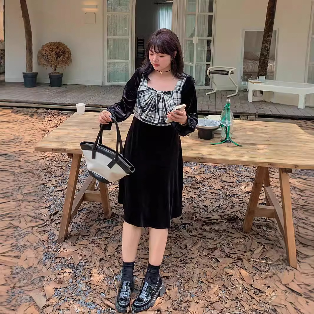 チェックに大きめのリボンが可愛いベロアワンピース★