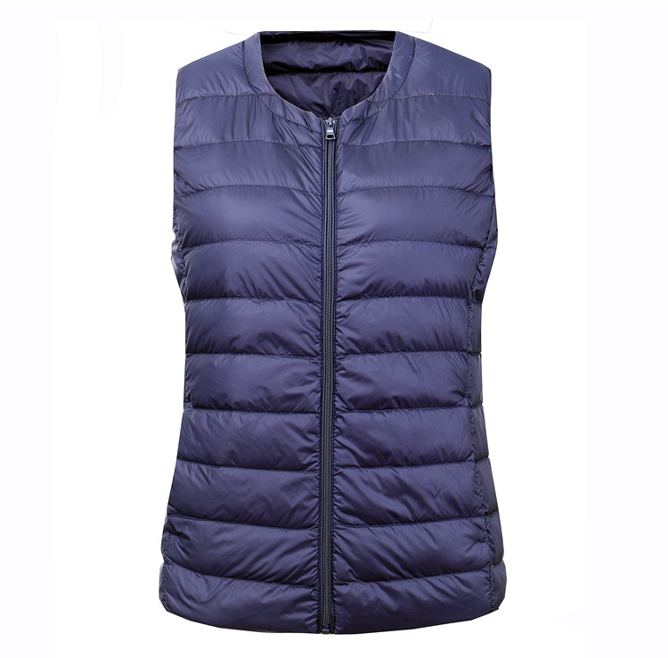 衿なしでインナーとしてもコーデし易い薄手ダウンベスト★