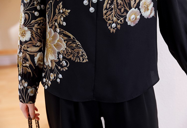 大胆な花の絵柄のエレガントな大人のブラウス★