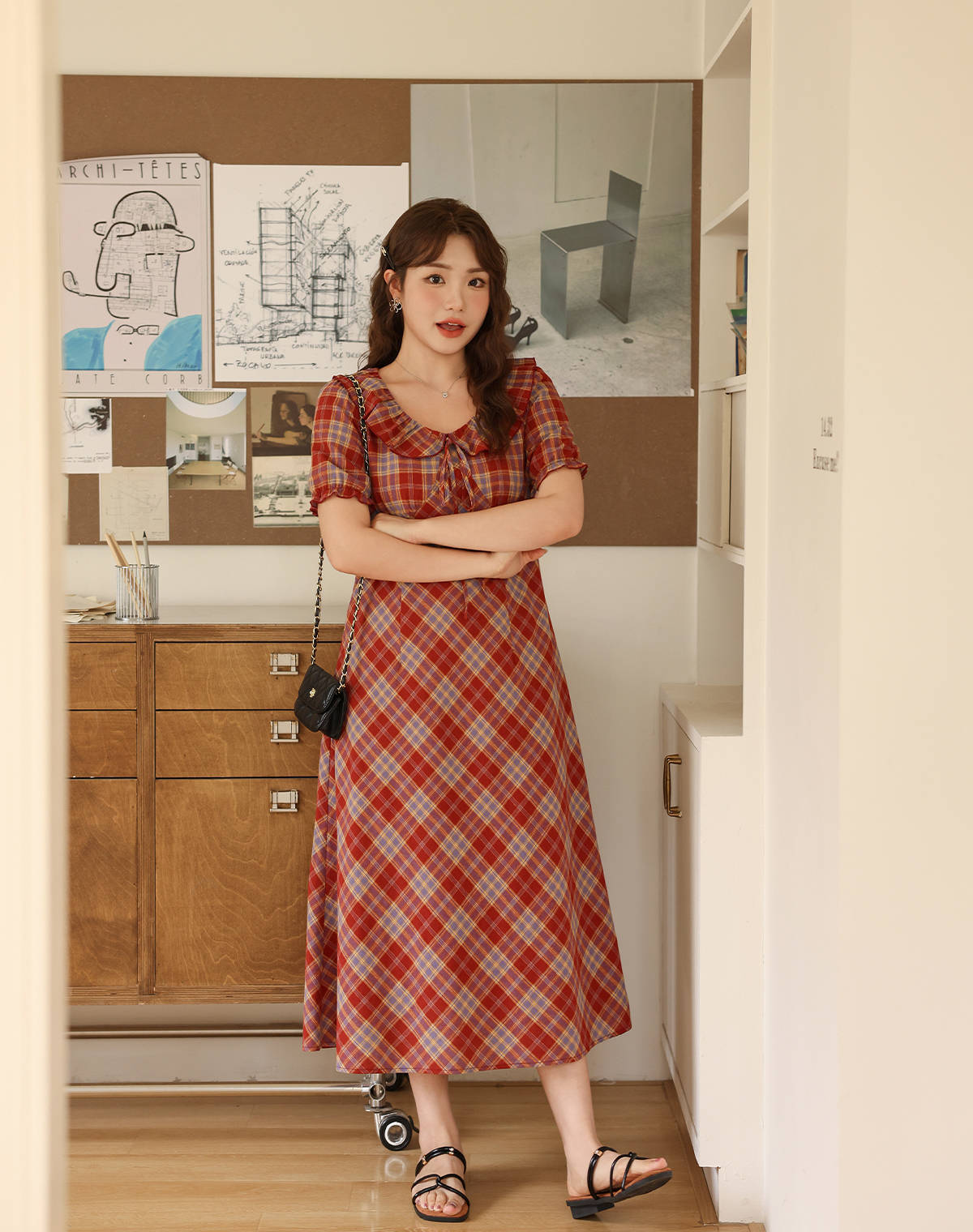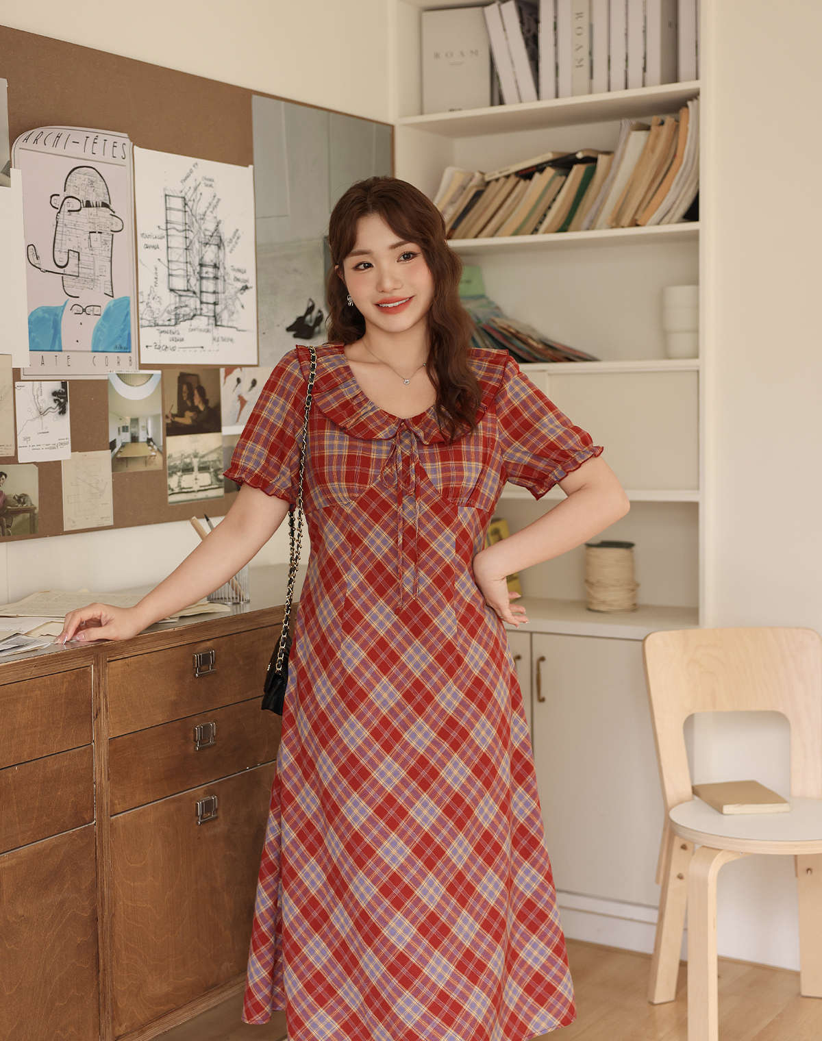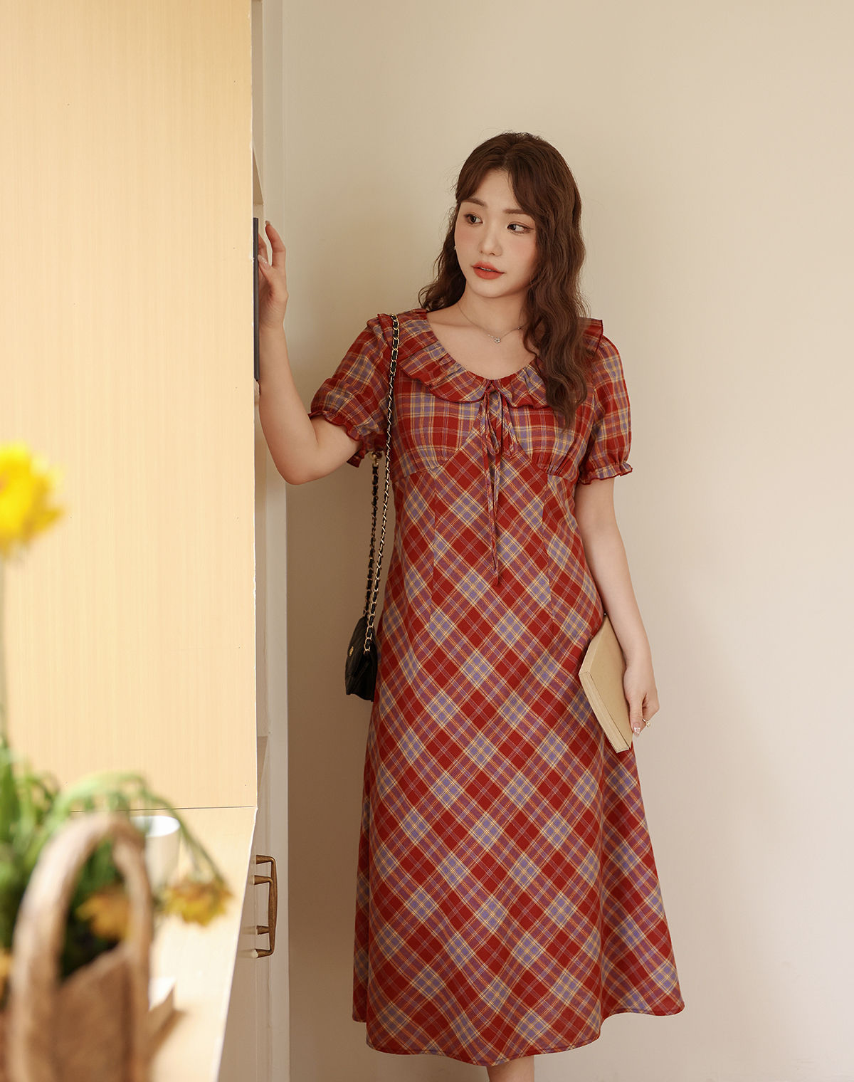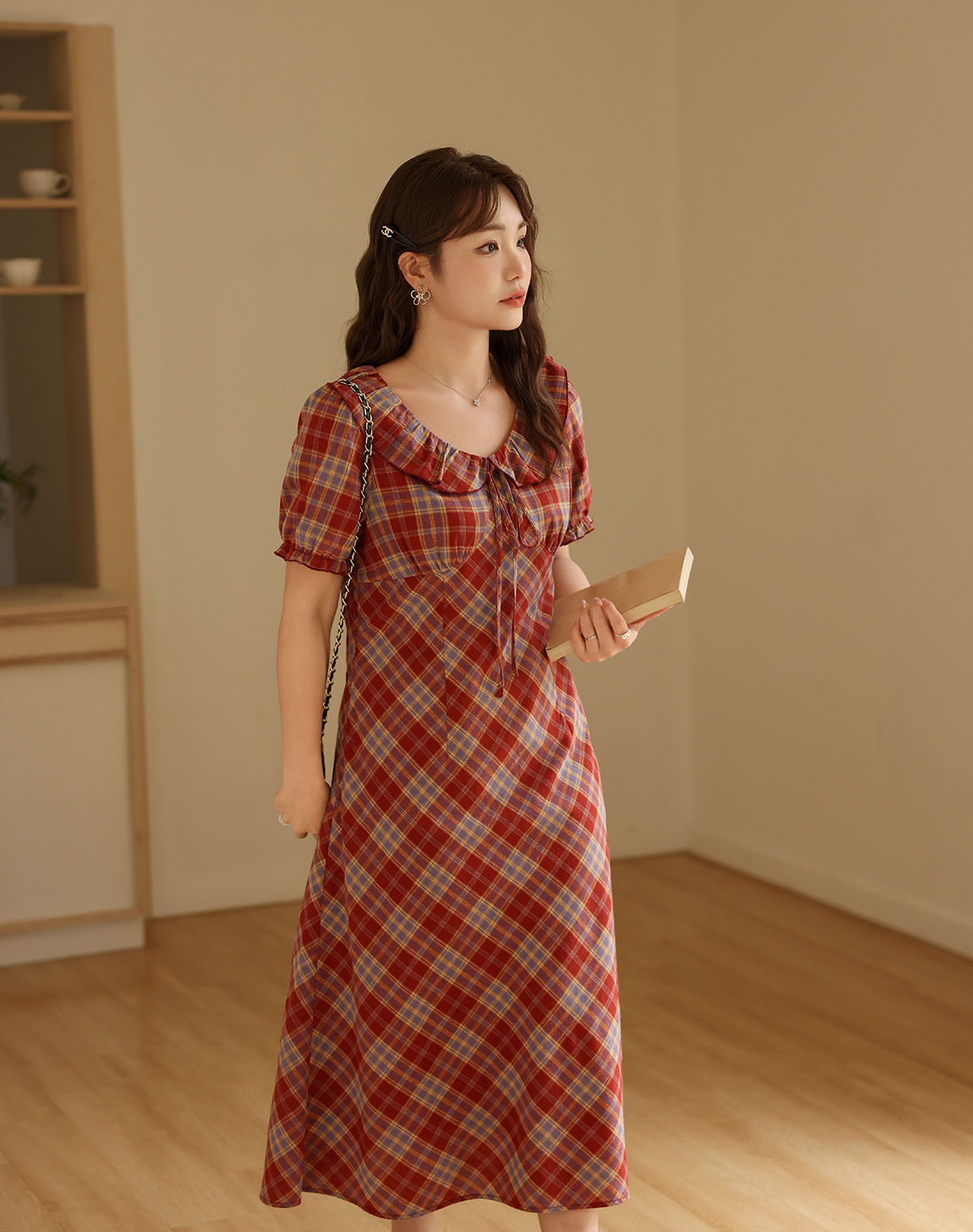 フェイスラインをスッキリデザインのハイウエストワンピース★